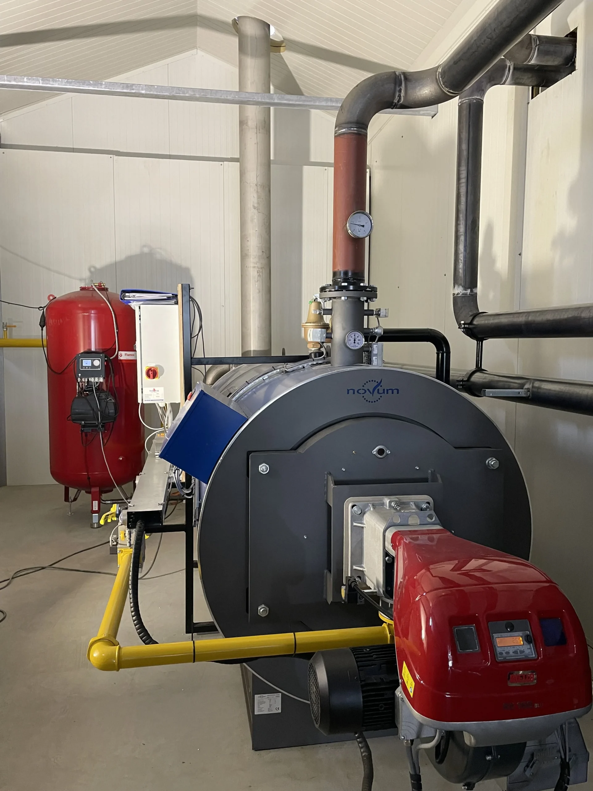 Gefaseerde aanleg zodat kwekerij en winkel operationeel blijven. Met hoogrendement ketels, warmteopslag en koppeling op termijn met restwarmte van een naburig houtverwerkingsbedrijf ontstaat een stabiel en energiezuinig binnenklimaat.
