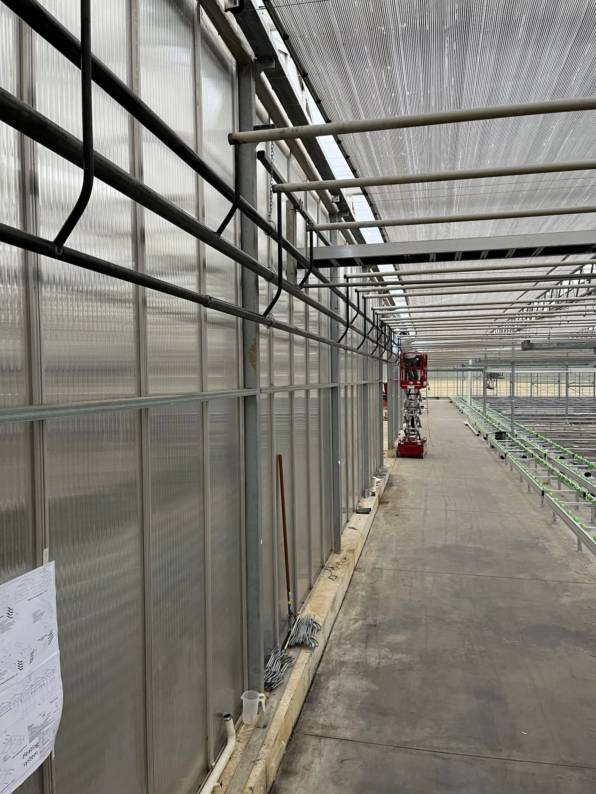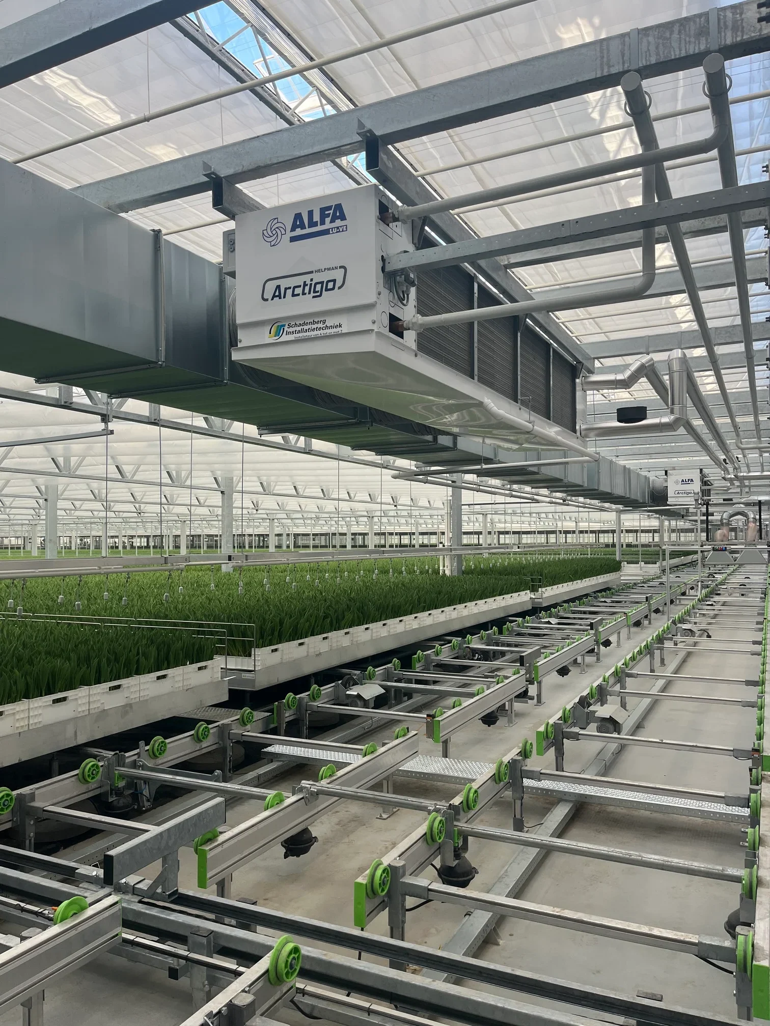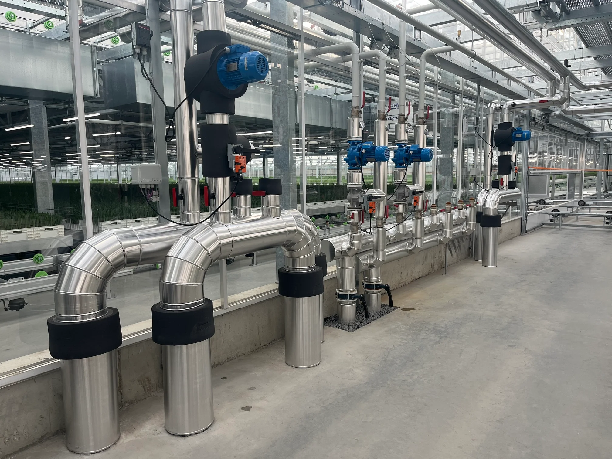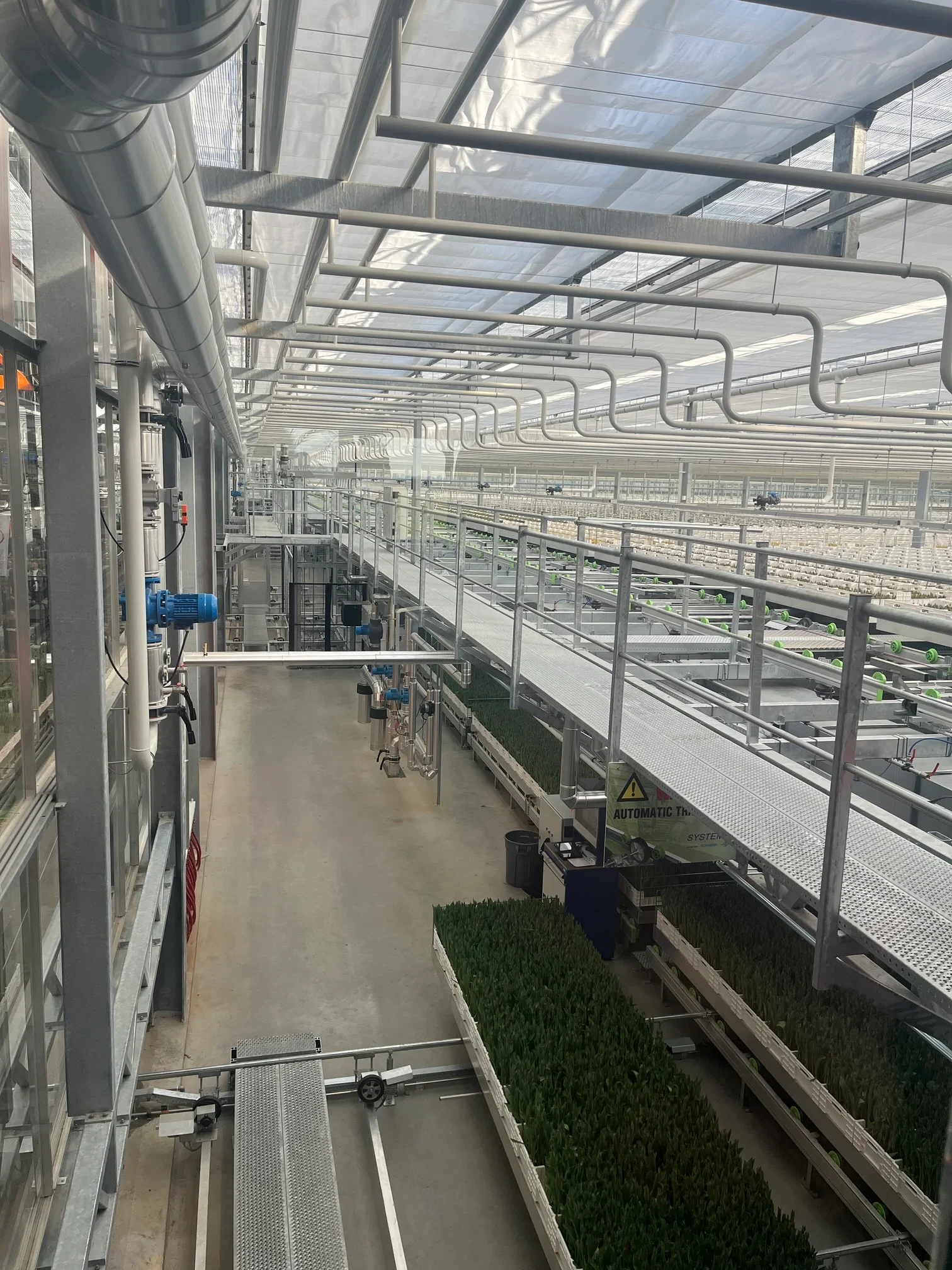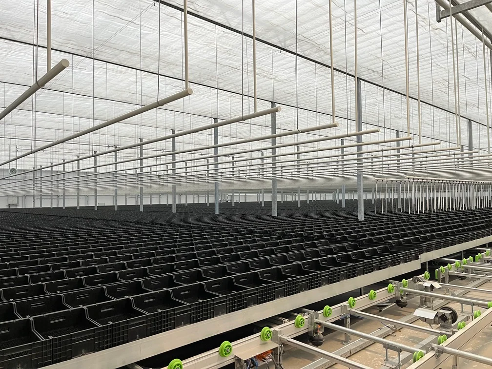 Herindeling van de kas in meerdere klimaatzones met elk specifieke temperatuur- en vochtbehoeften. Het verwarmingssysteem is aangepast op het automatische teeltsysteem en verschillende groeifasen.