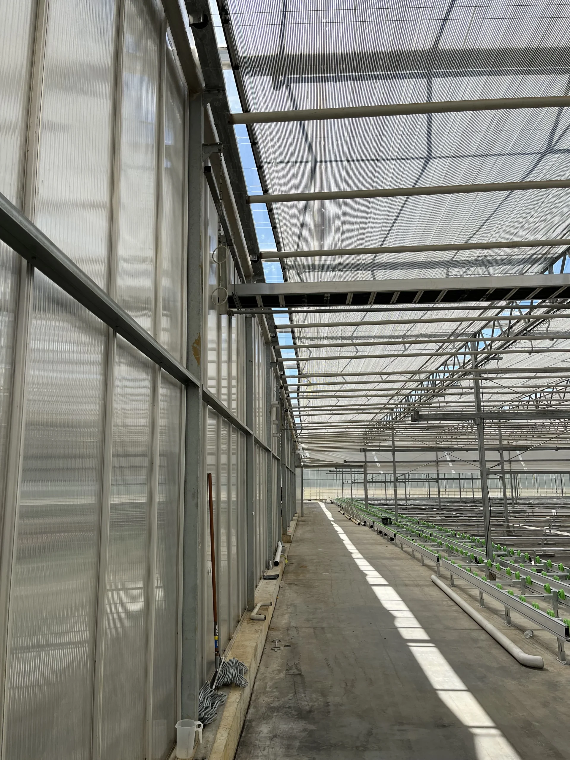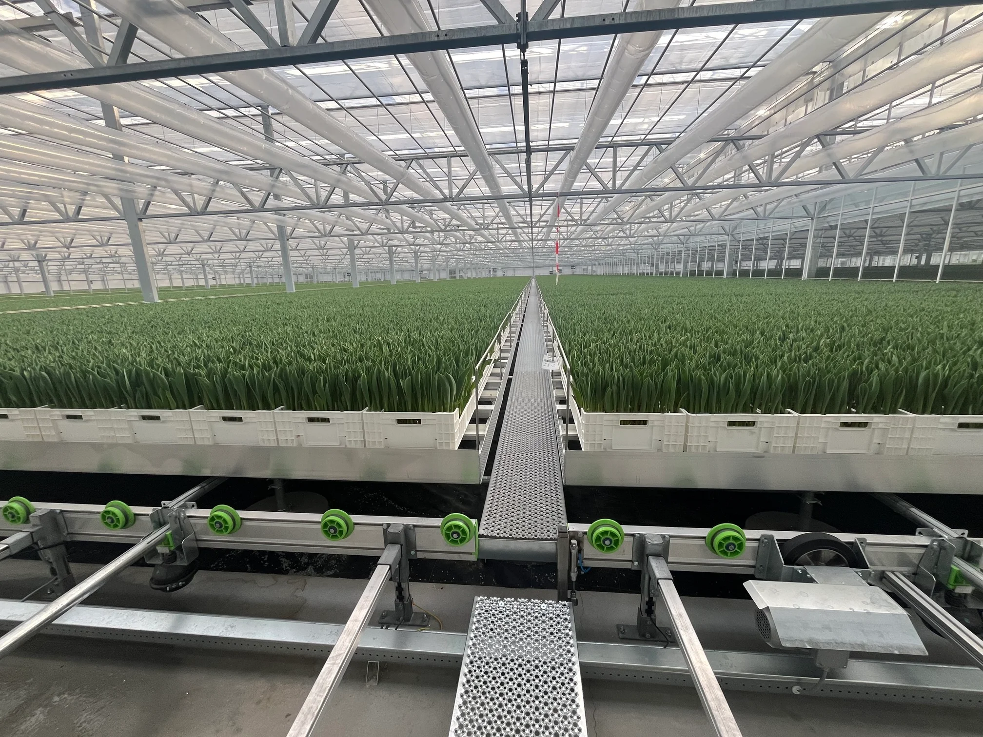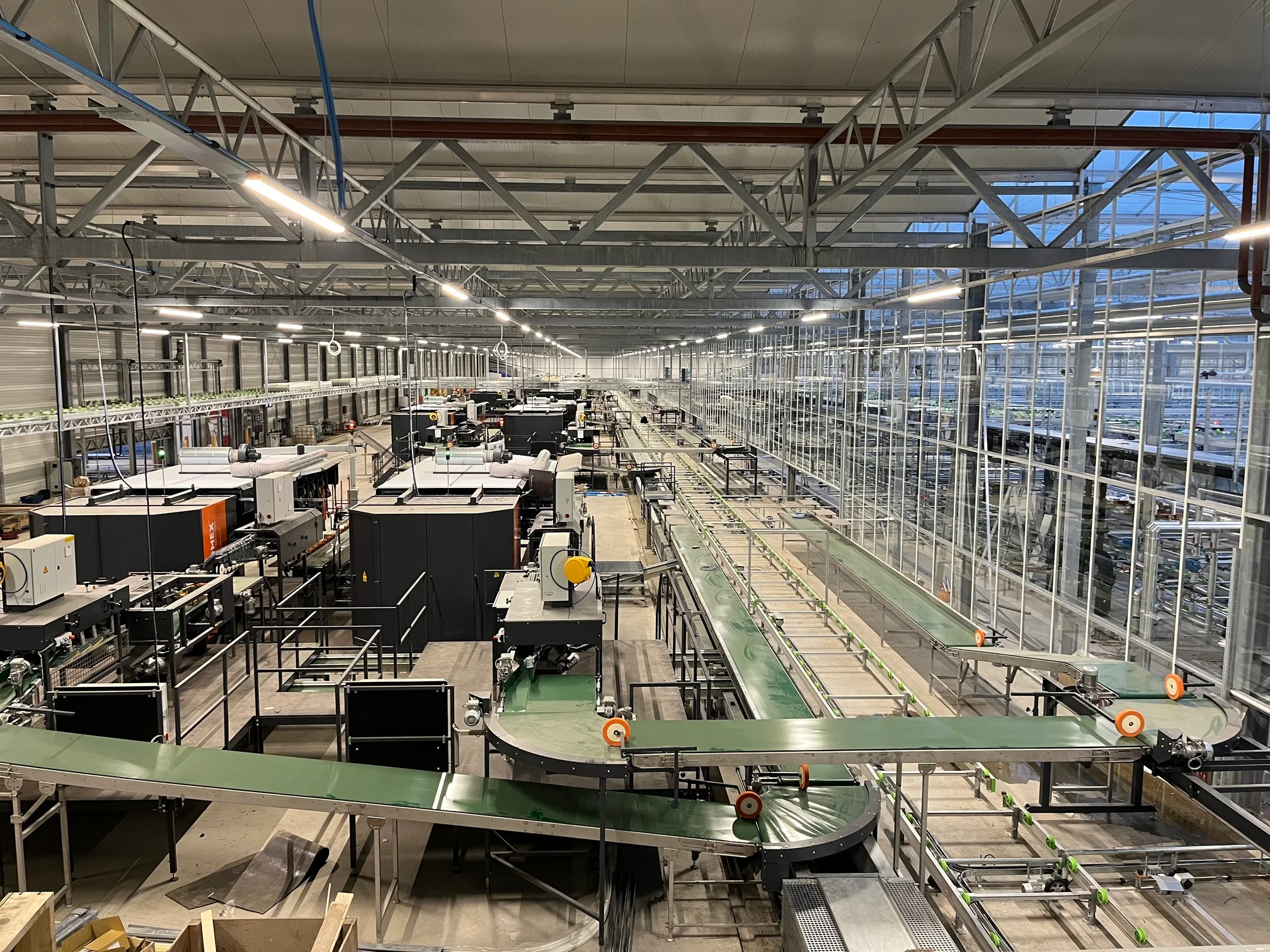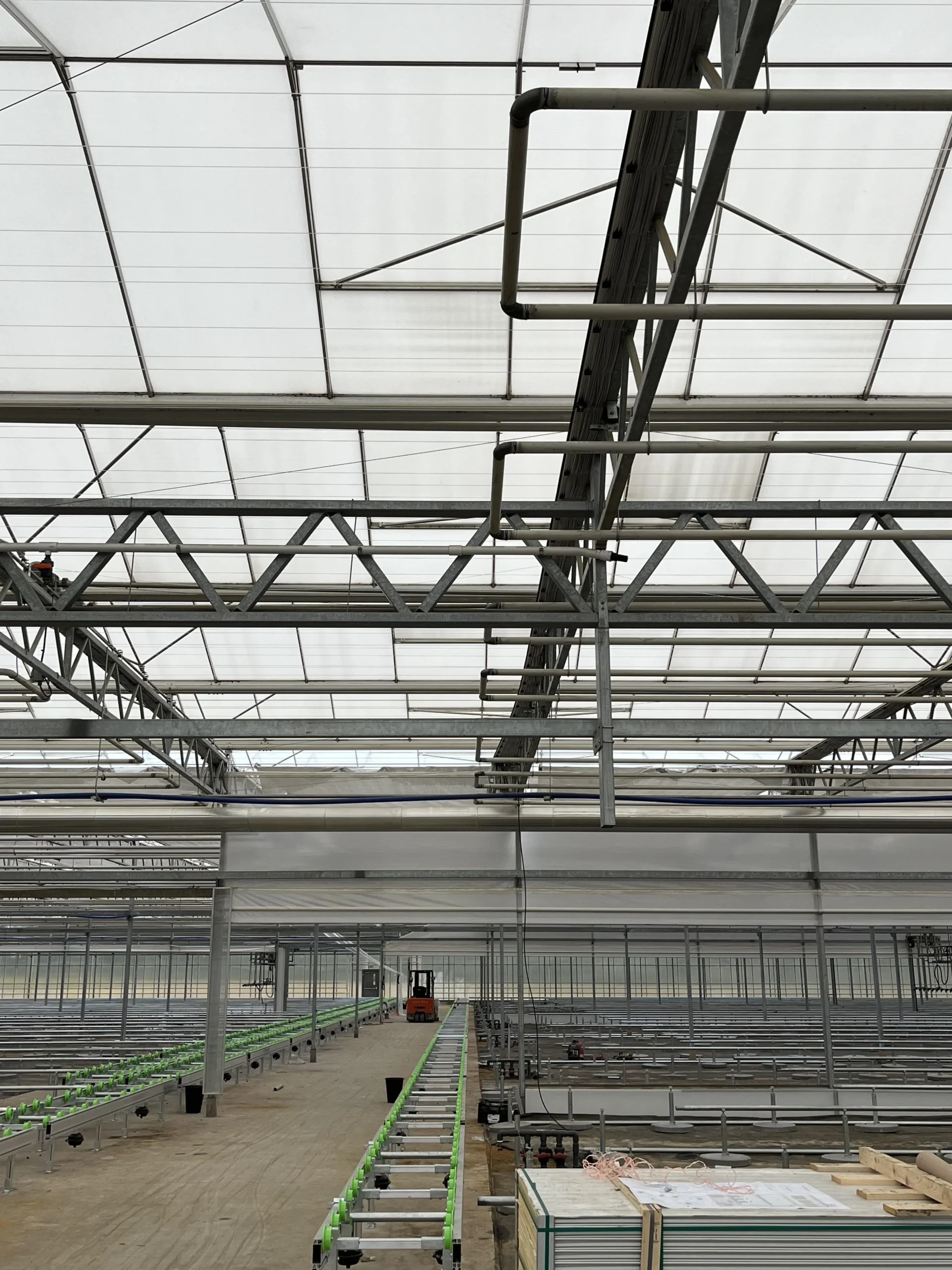Herindeling van de kas in meerdere klimaatzones met elk specifieke temperatuur- en vochtbehoeften. Het verwarmingssysteem is aangepast op het automatische teeltsysteem en verschillende groeifasen.