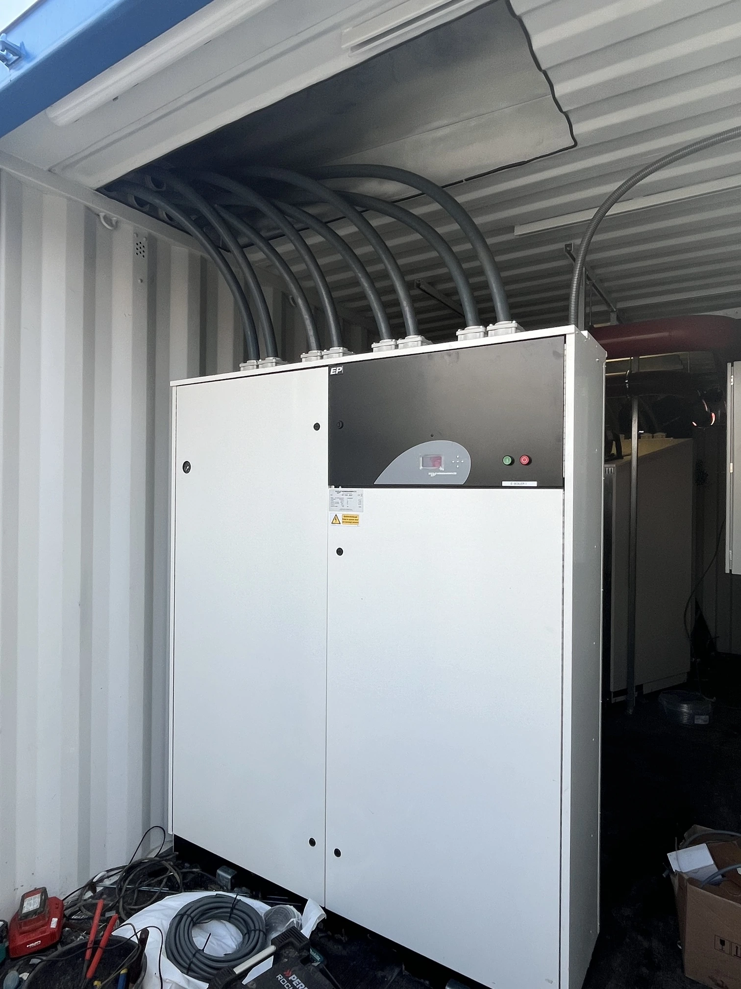 E-boilers gemonteerd in containers